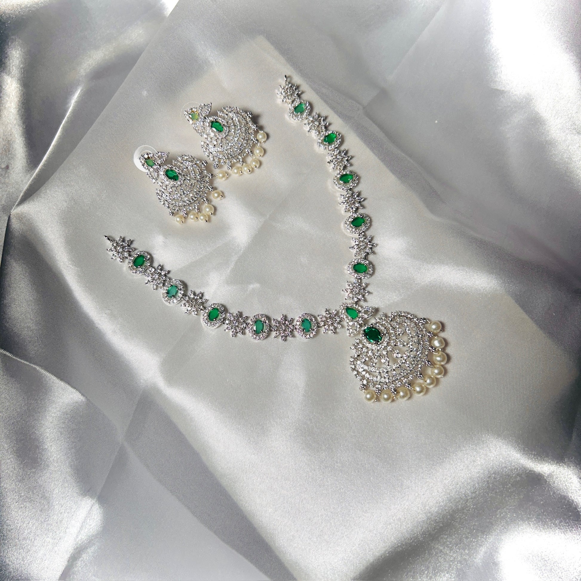 Royal Emerald Silver-Tone Necklace Set✨